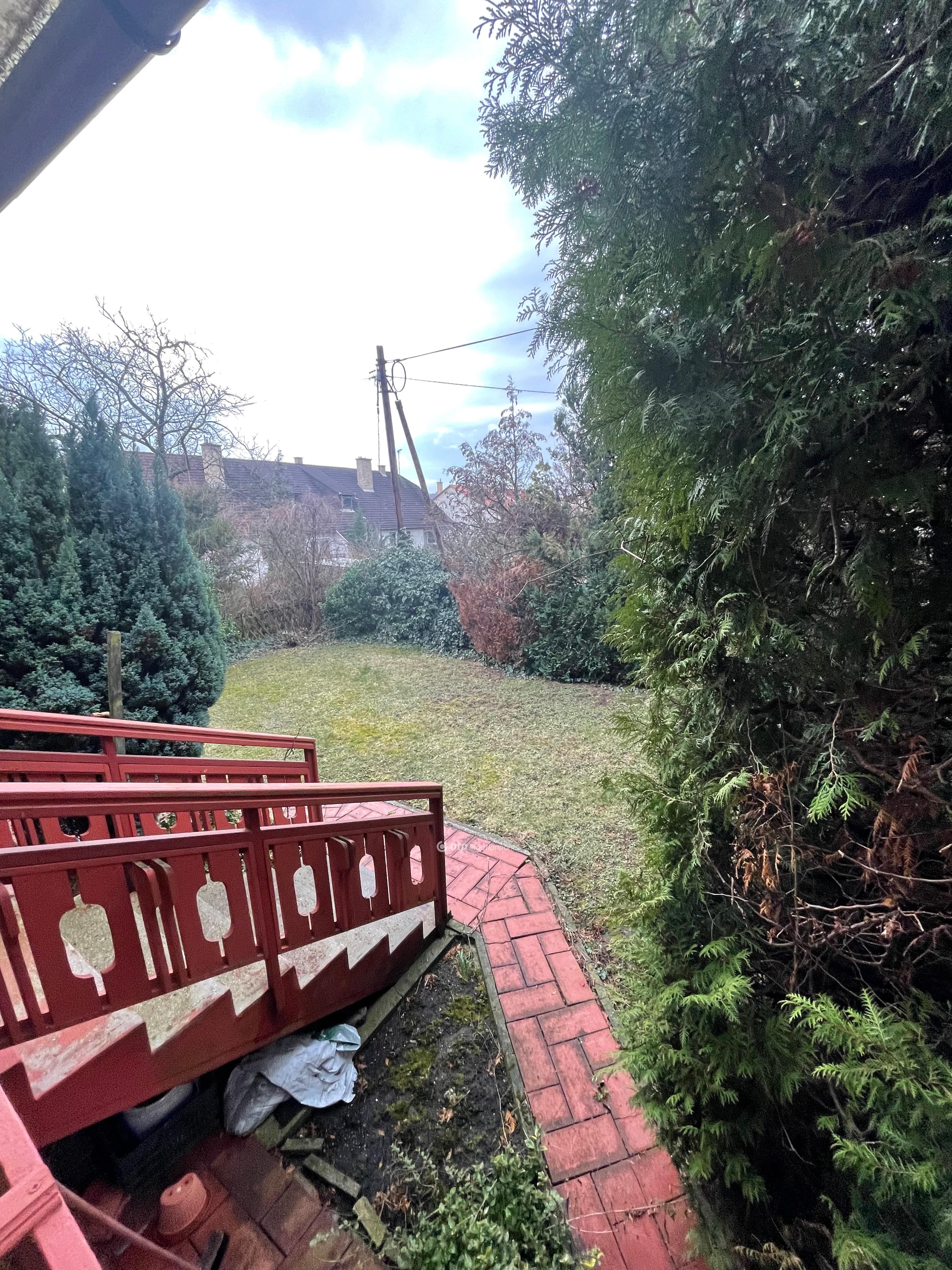 Az ingatlan parkosított kertje automata öntözőrendszerrel ellátott, melyhez külön vízóra is tartozik.