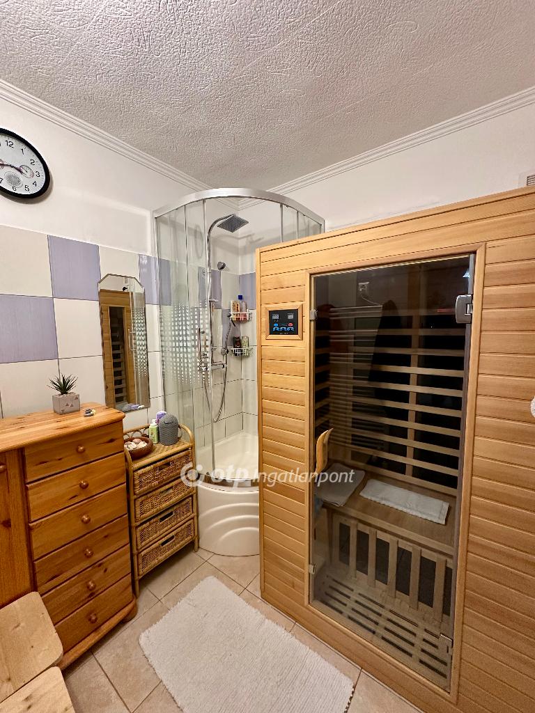 A konyhában klíma, a lakótérben tágas kamra, valamint infraszauna növeli a komfortot.