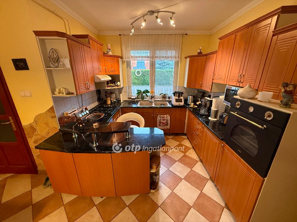 A nappalihoz szervesen kapcsolódik az étkező és a külön helyiségben kialakított, beépített konyhabútorral felszerelt konyha, amely mellett egy praktikus, hűvös kamra is megtalálható.